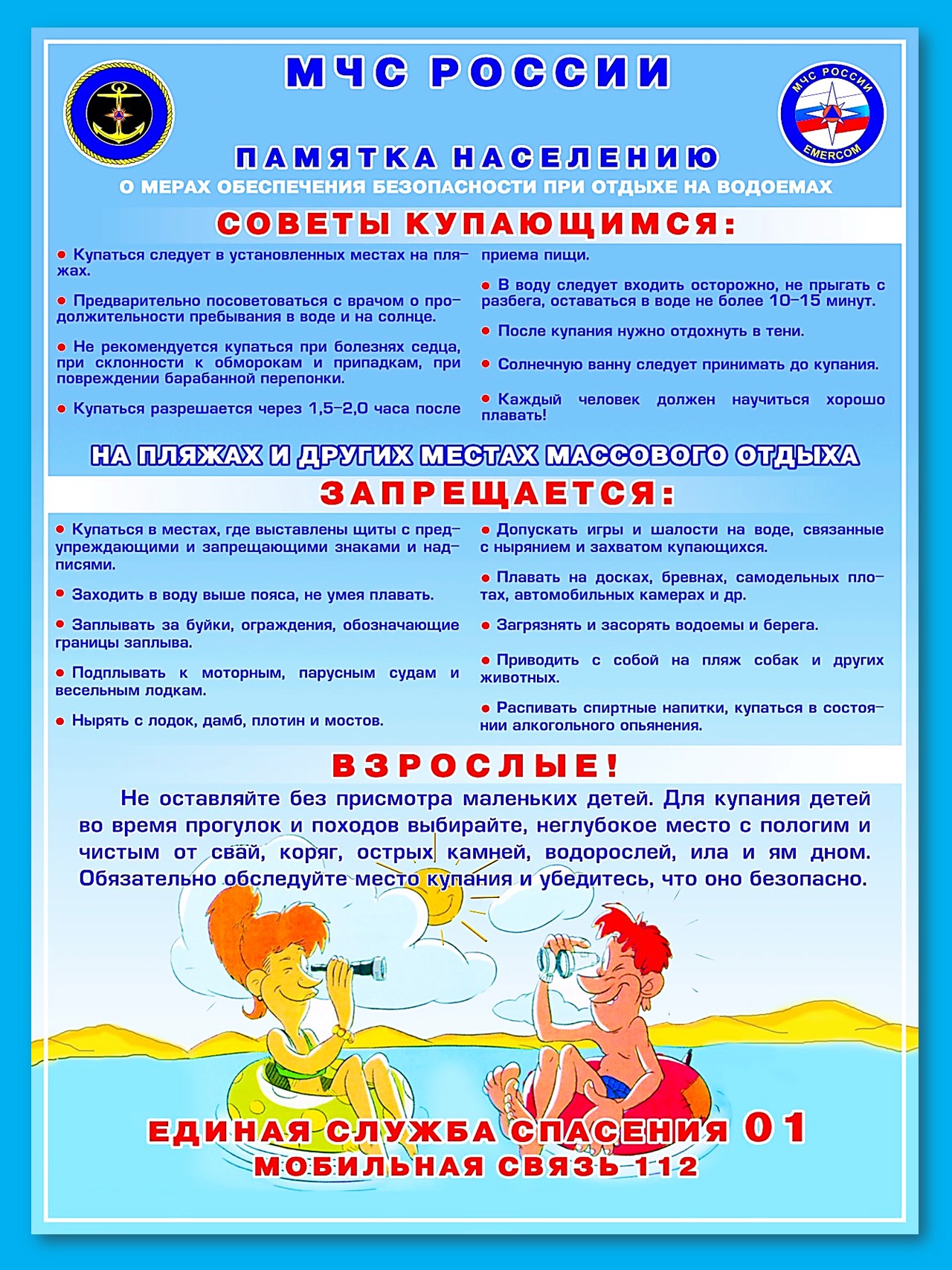 Памятка: правила безопасного купания летом