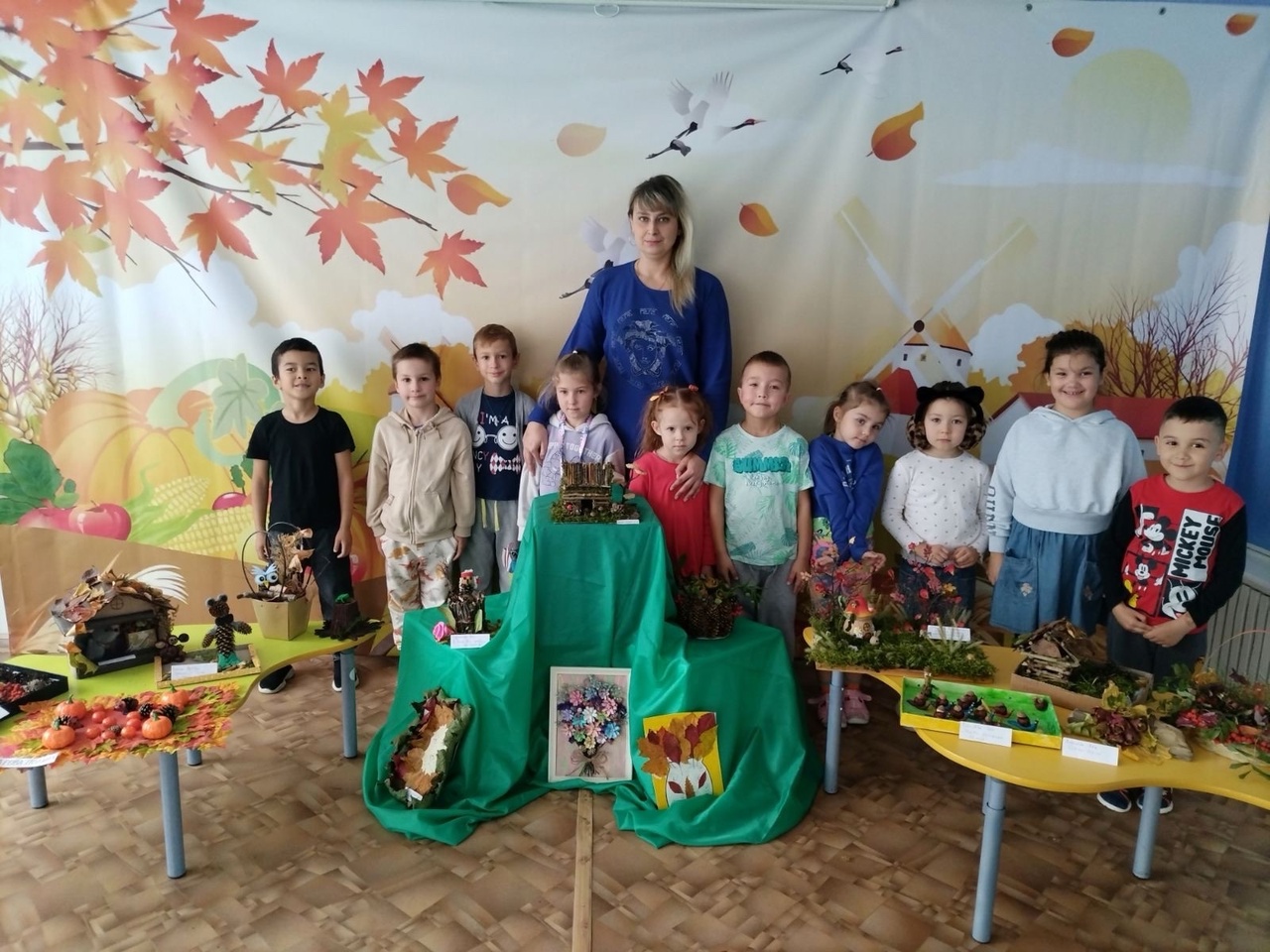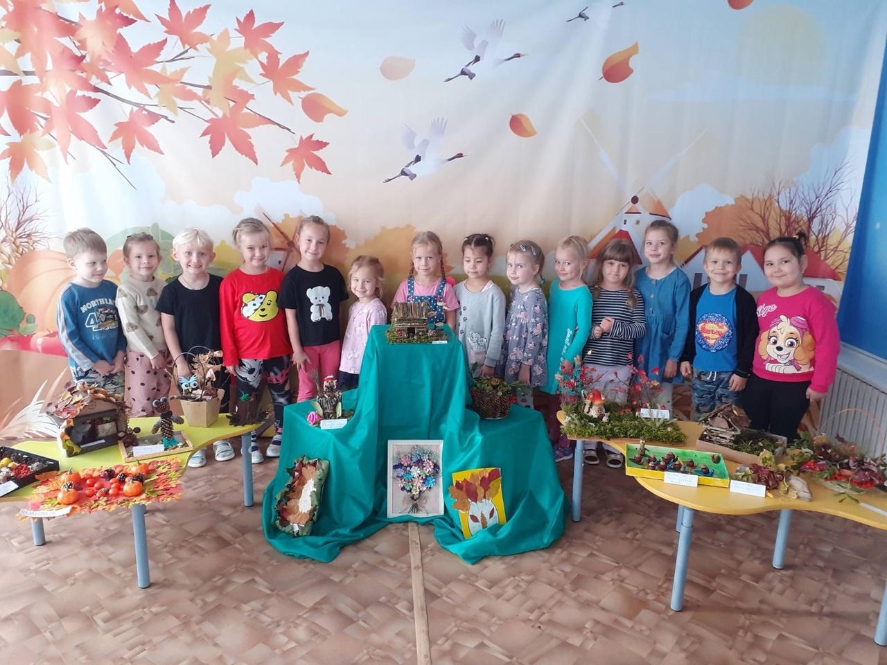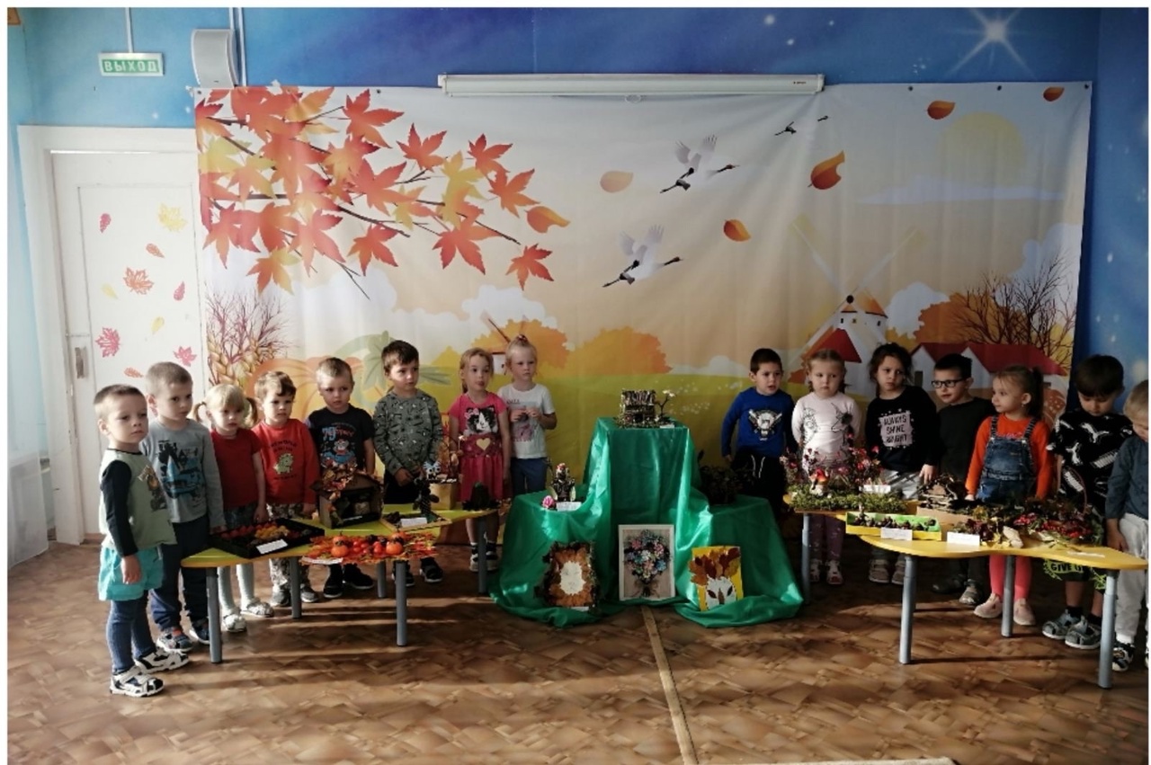 В детском саду прошла выставка осенних поделок. На ней были представлены работы из природного материала, сделанные детьми и их родителями.